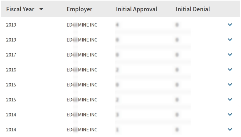 - 2014, 2015, 2016, 2017, 2019년 취업비자 스폰이력 확인.