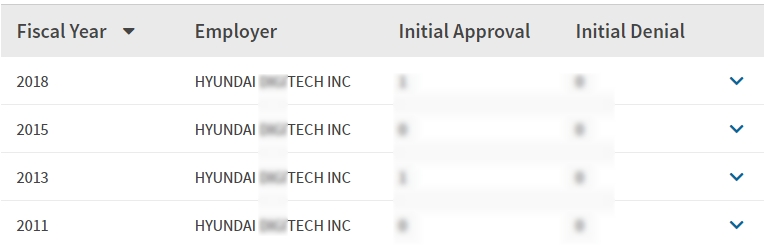 - 2011, 2013, 2015, 2018년 취업비자 스폰이력 확인.