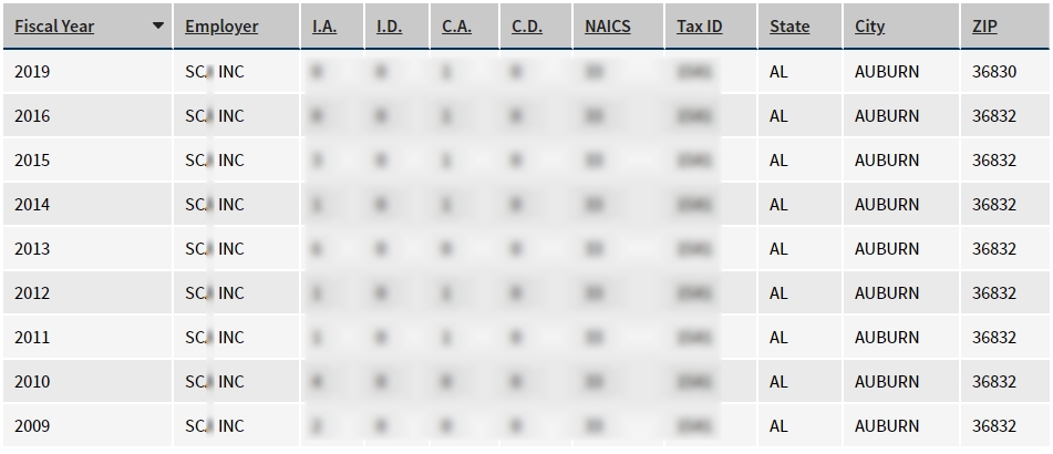 - 2009, 2010, 2011, 2012, 2013, 2014, 2015, 2016, 2019년 취업비자 스폰이력 확인.