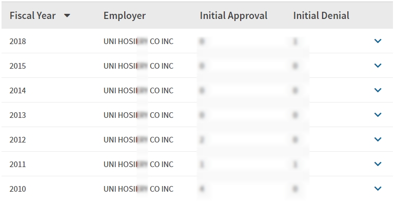- 2010, 2011, 2012, 2013, 2014, 2105, 2018년 취업비자 스폰이력 확인.