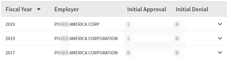 - 2017, 2019년 취업비자 스폰이력 확인.