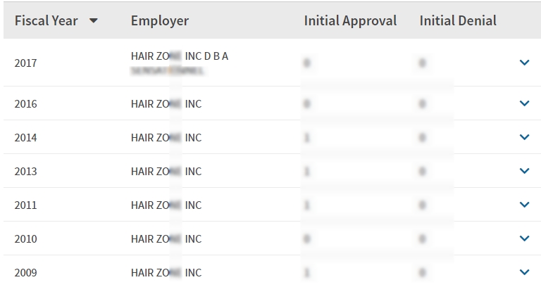 - 2009, 2010, 2011, 2013, 2014, 2016, 2017년 취업비자 스폰이력 확인.