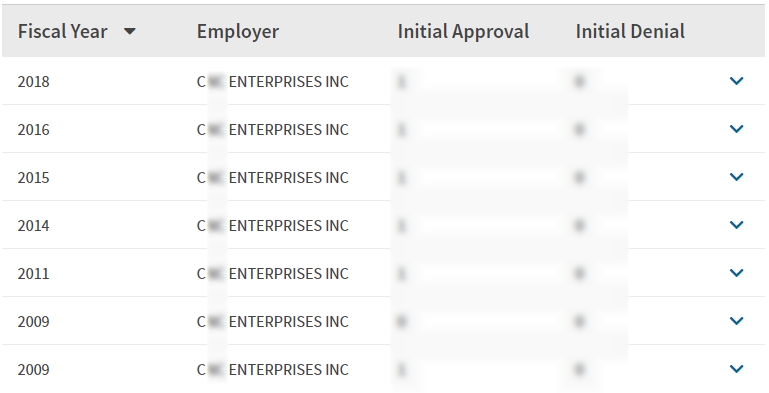 - 2009, 2011, 2014, 2015, 2016, 2018년 취업비자 스폰이력 확인.