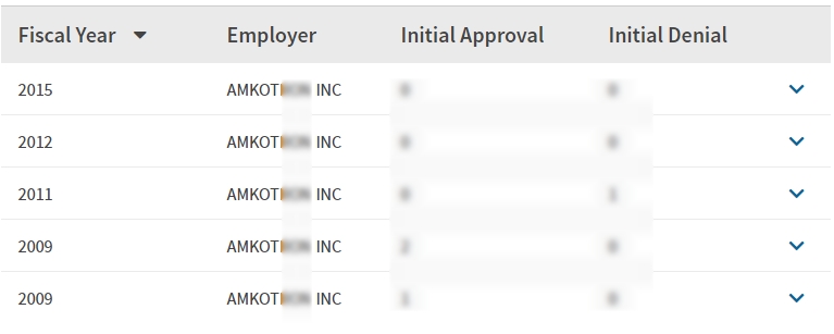 - 2009, 2011, 2012, 2015년 취업비자 스폰이력 확인.