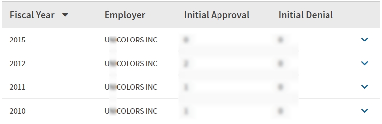 - 2010, 2011, 2012, 2015년 취업비자 스폰이력 확인.