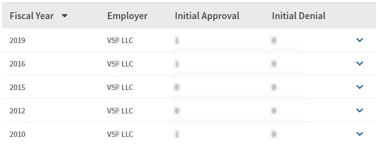- 2010, 2012, 2015, 2016, 2019년 취업비자 스폰이력 확인.