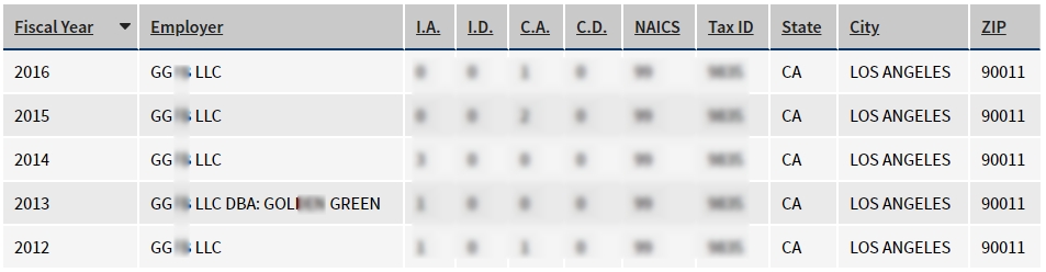 - 2012, 2013, 2014, 2015, 2016년 취업비자 스폰이력 확인.