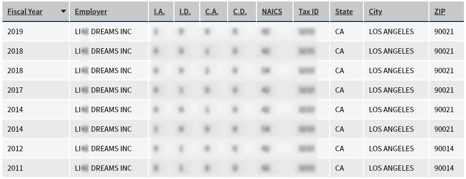 - 2011, 2012, 2014, 2017, 2018, 2019년 취업비자 스폰이력 확인.