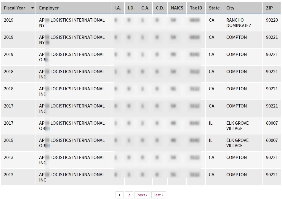 - 2012, 2013, 2015, 2017, 2018, 2019년 취업비자 스폰이력 확인.