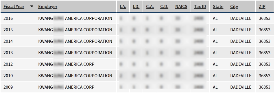 - 2009, 2010, 2012, 2013, 2014, 2015, 2016년 취업비자 스폰이력 확인.