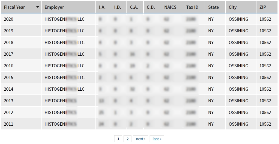 - 2009~2020년 매년 취업비자 스폰이력 확인.