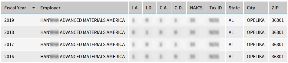 - 2016, 2017, 2018, 2019년 취업비자 스폰이력 확인
