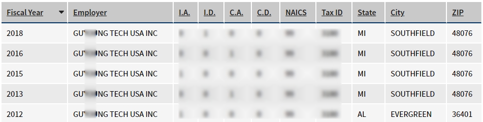 - 2012, 2013, 2015, 2016, 2018년도 취업비자 스폰이력 확인.