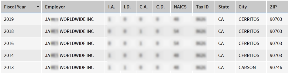- 2013, 2014, 2016, 2018, 2019년 취업비자 스폰이력 확인.