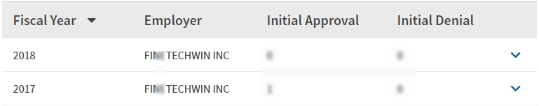 - 2017, 2018년 취업비자 스폰이력 확인.